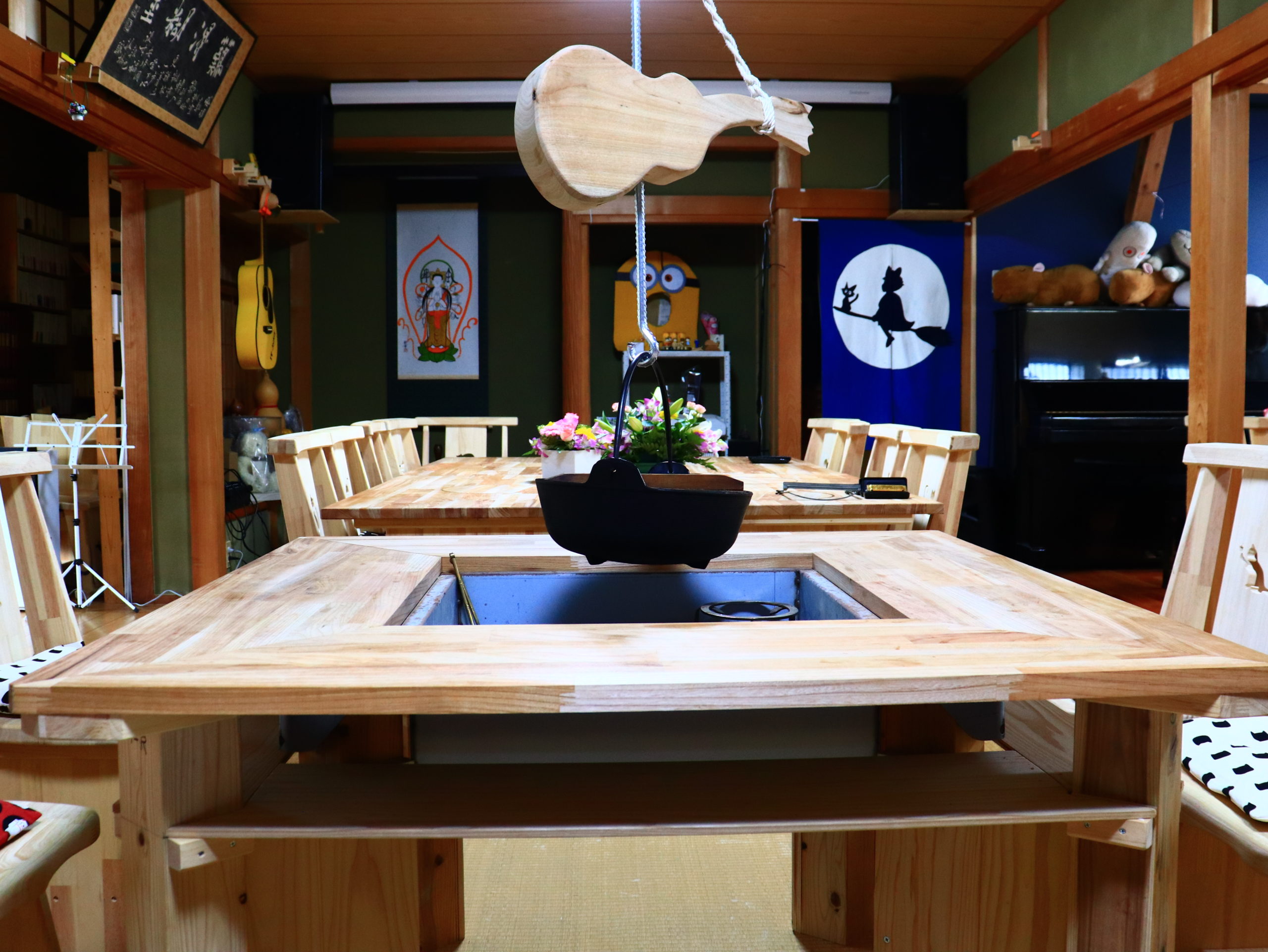 パーティー・ライブ用メニュー パーティ・ライブ用メニュー 展示会やイベントの軽食やドリンク、結婚式や2次会のお料理にドリンク、ライブや各種イベントなどご予算に応じて対応いたします。 以下は一例です。ご要望があればお気軽にどうぞ。 オードブル ローストビーフ 自家製です。 囲炉裏での焼き物 仕入れがあれば鮎を。焼鳥などもOK! おでん 囲炉裏で温めて食べてください! 鍋料理 おでん以外の寄せ鍋などもOK! フルーツ盛り合わせ 旬のものやお好みのものを ランチメニュー ↗ ピザやカレーなど。 カフェ・ドリンクメニュー ↗ コーヒー、紅茶、デザート等 ディナーメニュー ↗ 囲炉裏を使った料理など ライブ/イベント時 ↗ オードブル、鍋など